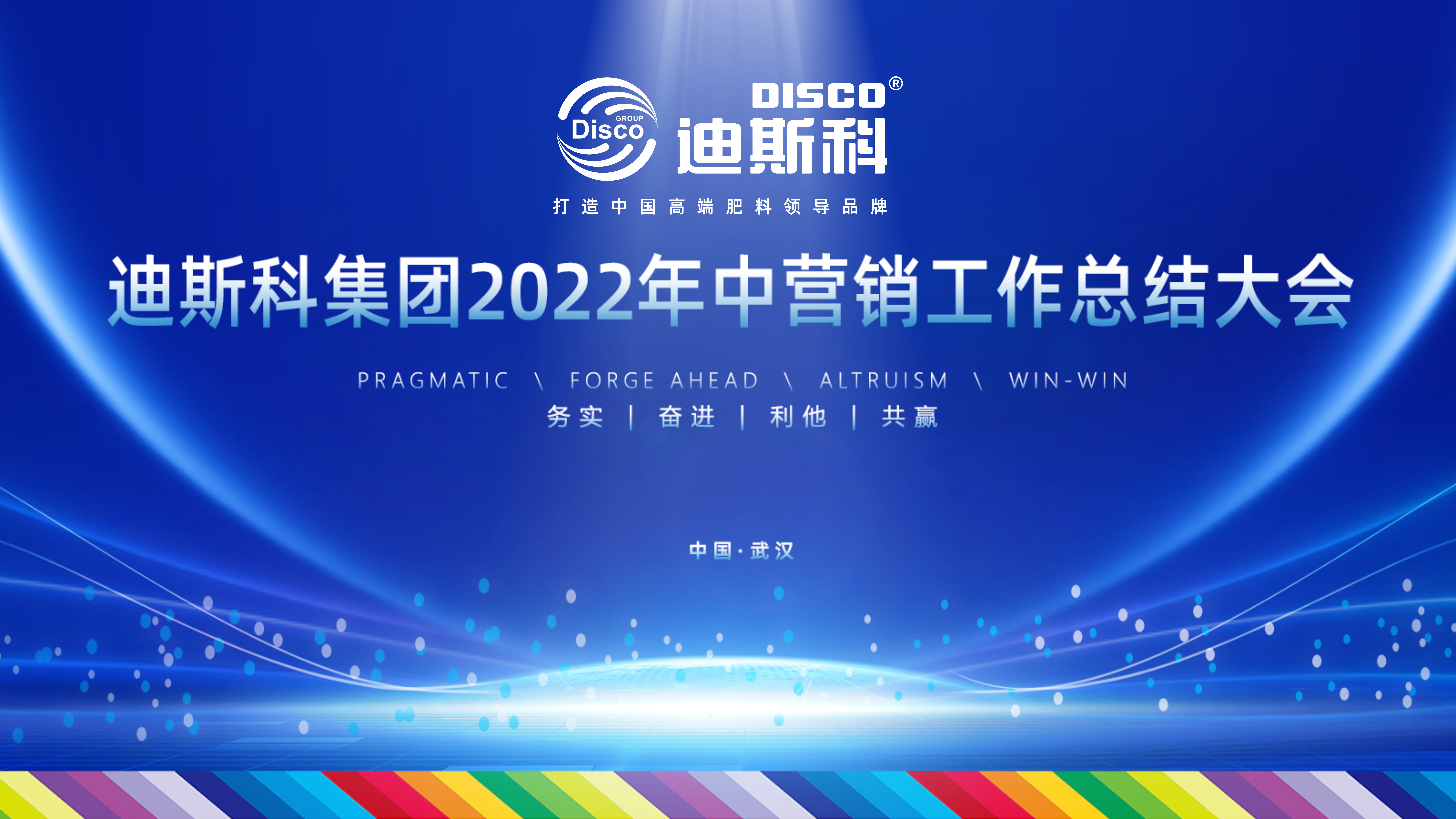 6月6日-8日,迪斯科集团2022年中营销总结大会在武汉顺利召开。迪斯科集团董事长陈家辉、全国营销管理中心总经理胡红涛、常务副总经理阮志伟等领导出席会议,各战区副总经理及核心营销人员参加会议。迪斯科营销精锐齐聚一堂,总结分析过去半年的成就与经验,合力谋划2022下半年营销新发展。