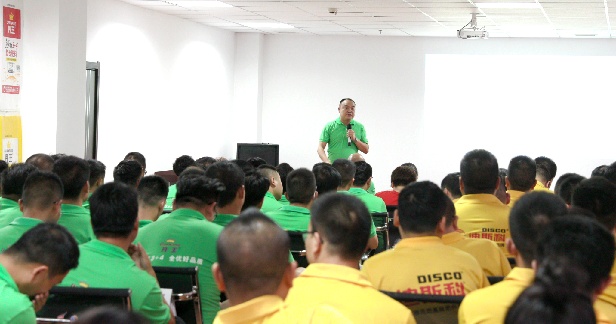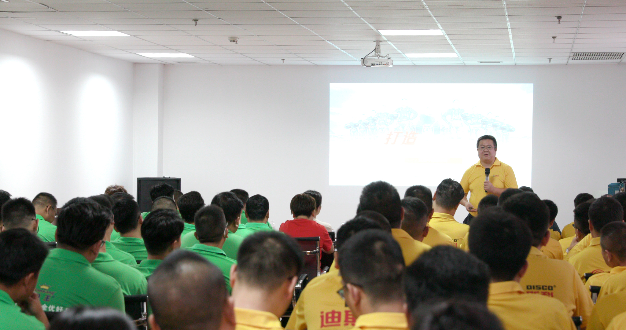 全国营销管理中心副总经理薛向美以“空谈误业绩、实干创佳绩”为主题,通过原材料的价格走势、迪斯科产品在市场中的占位分析,从人员、心态、产品、客户四个角度去应对逆势下的今天,让大家听得意犹未尽、受益匪浅。