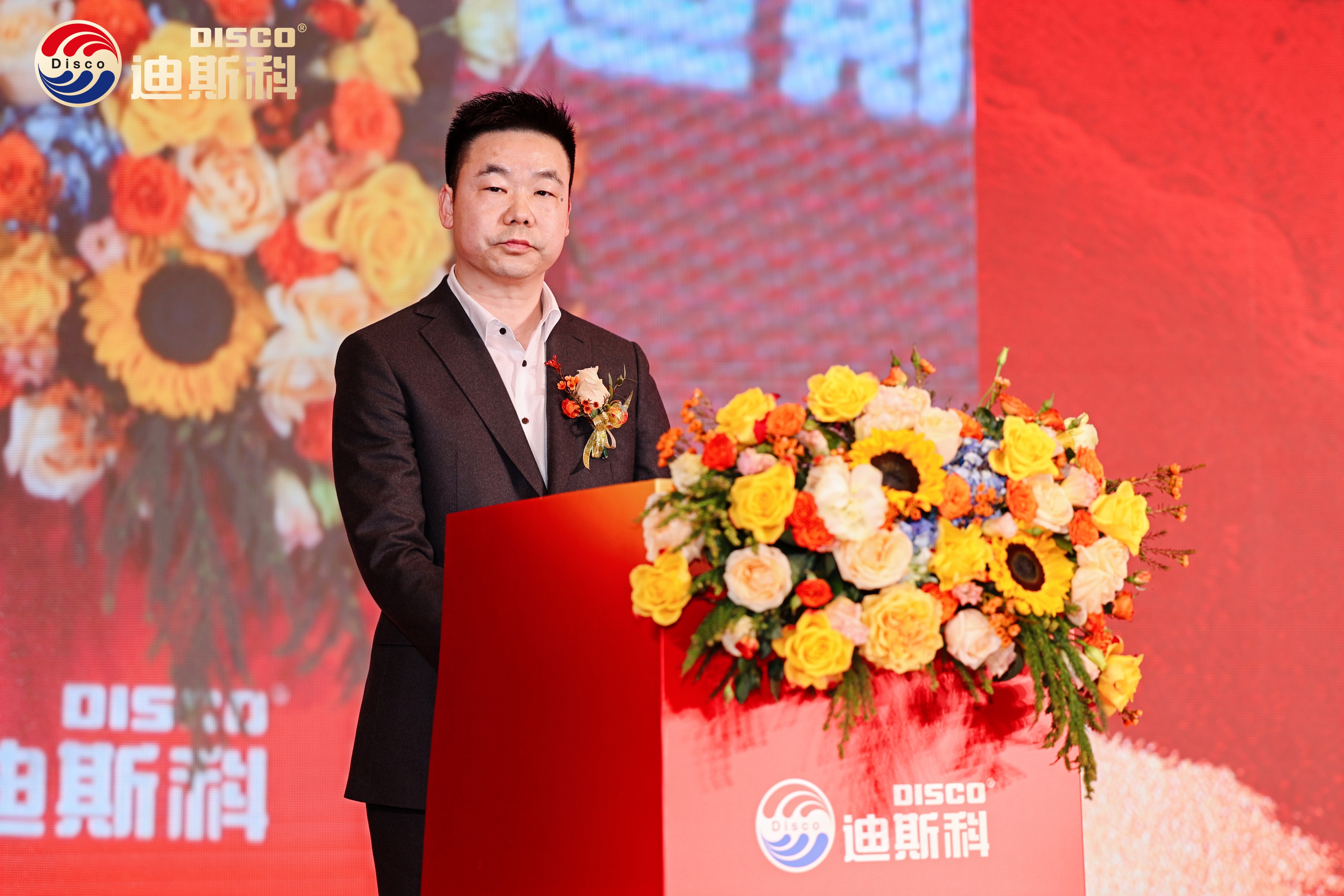 甘肃省金昌市永昌县委副书记、河西堡镇党委书记、永昌工业园区党工委书记刘吉军发表致辞:迪斯科集团甘肃金昌生产基地顺利开工,标志着地企合作迈入了一个崭新阶段,我们将始终竭力给予支持,也真诚希望迪斯科紧跟市场步伐,强化科研攻关,科学规划产能,精细生产管理,提高产品品质,做大规模、塑造品牌,形成地企深入合作、携手共赢的良好局面。