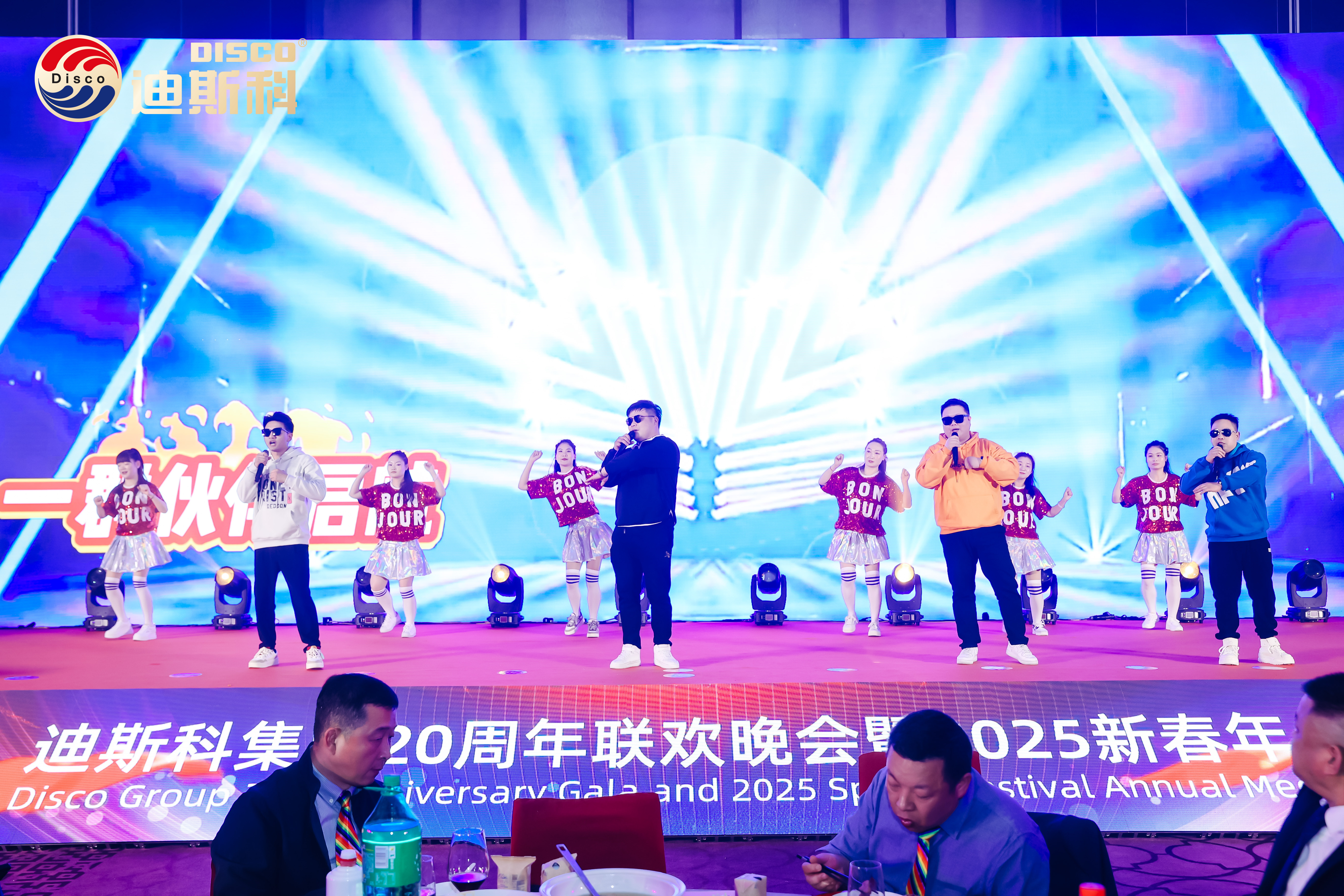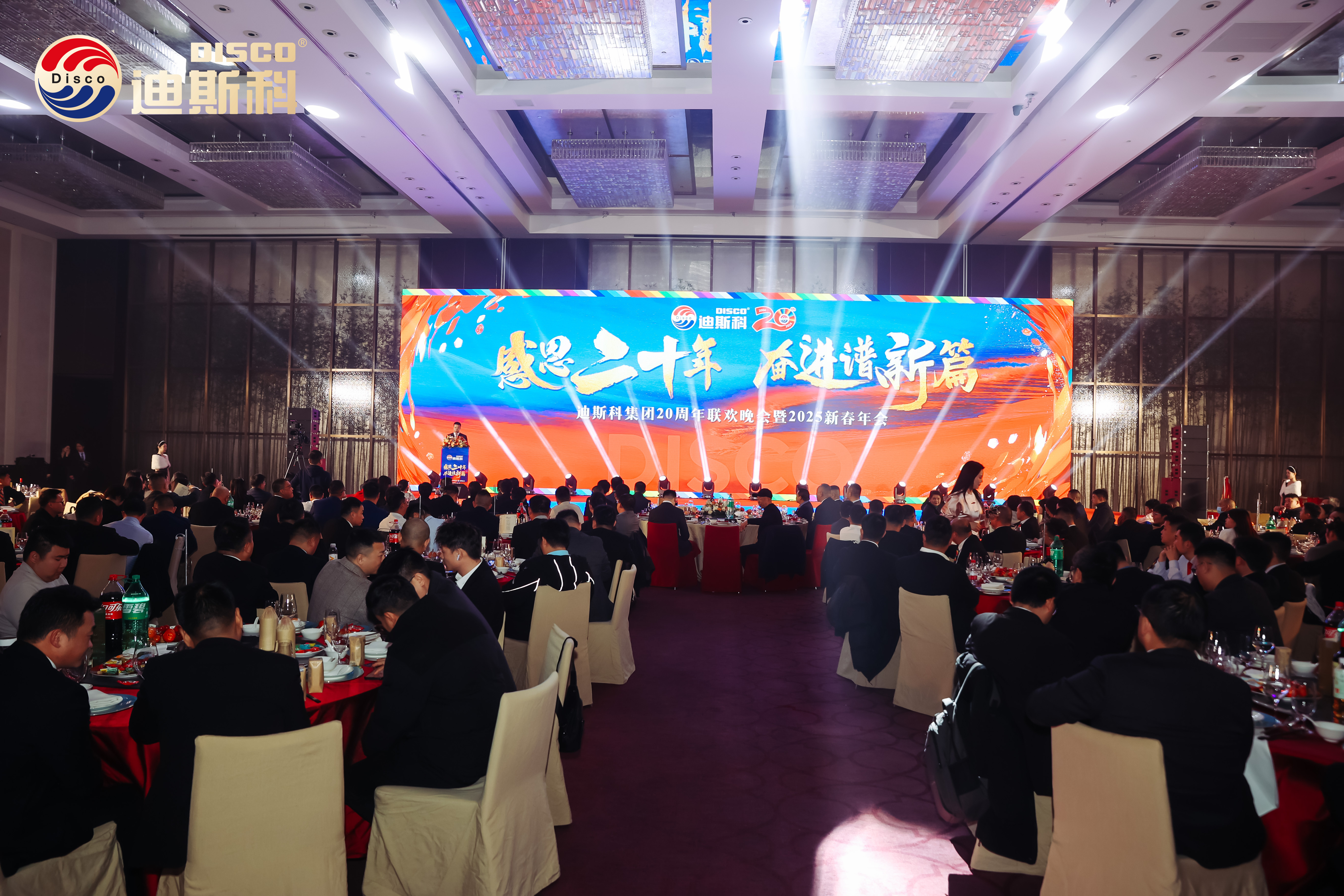20载征途浩荡,20载春华秋实,20载辉煌荣光,照耀着每一个迪斯科人;新岁的恢宏蓝图,新岁的活力奔涌,新岁的铮铮号角,鼓舞着每一个迪斯科人。1月23日,“感恩二十年 奋进谱新篇——迪斯科集团20周年联欢晚会暨2025新春年会”在武汉泛海费尔蒙酒店隆重举行,集团领导、各中心部门全体员工、各分公司全体营销人员,河北固安、湖北枝江、湖北宜昌、甘肃金昌各生产基地员工代表近400人欢聚一堂,齐贺新春,奏响新年序曲;共庆集团20年发展的辉煌历程,开启崭新征程!
