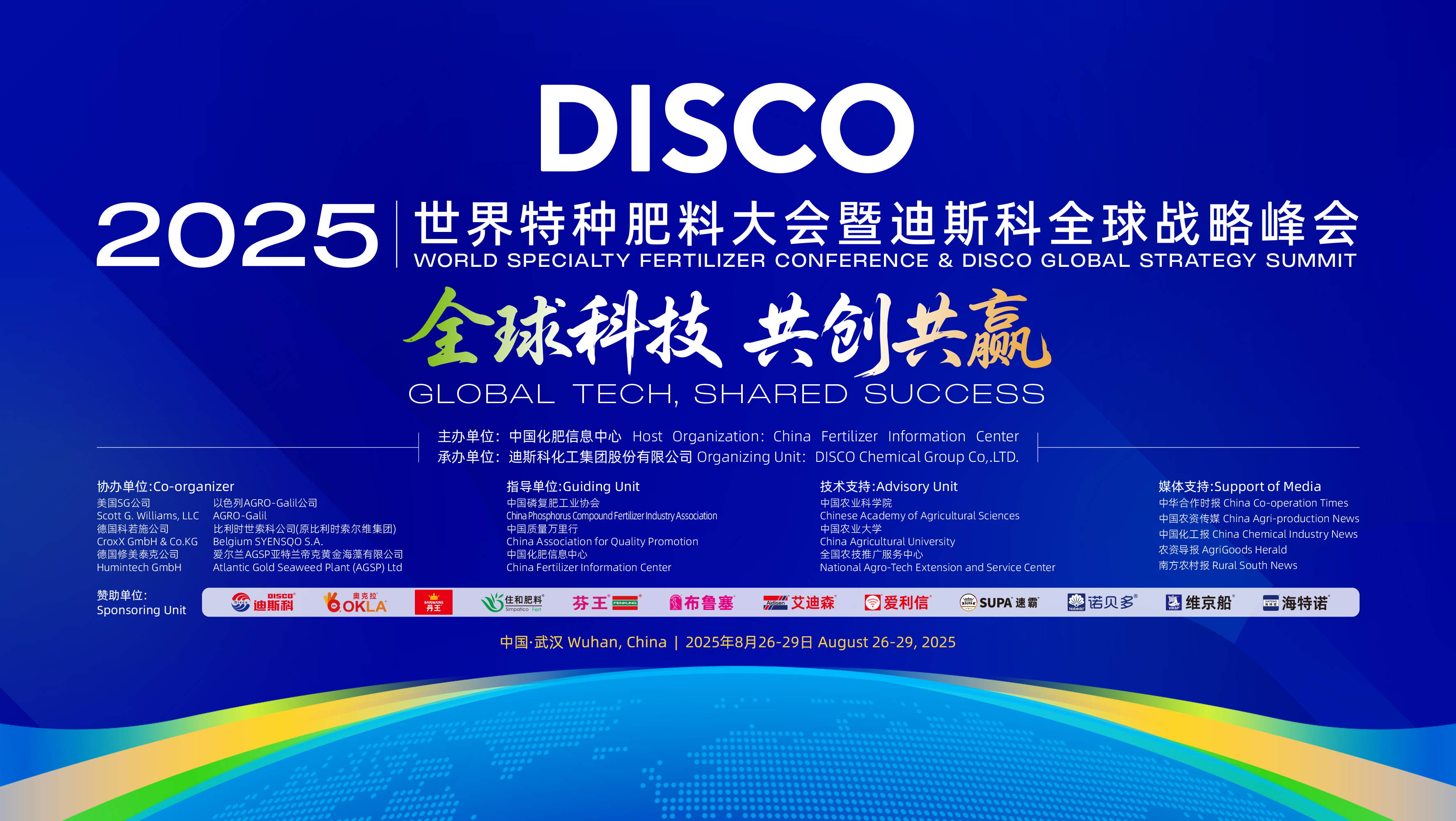 从长江之畔到全球舞台,2025 世界特种肥料大会暨迪斯科全球战略峰会不仅是一场行业发展盛会,更是一次全球特肥领域的“思想碰撞与资源聚合”,为推动产业协同创新、深化国际合作提供了重要契机和平台。作为大会承办方,迪斯科集团深耕特肥领域20余年,未来将始终秉承 “为全球农业可持续发展和人类健康做出积极贡献” 的使命,引领行业科技创新,促进农业生态发展,为全球农业的高质量、可持续发展贡献迪斯科力量。