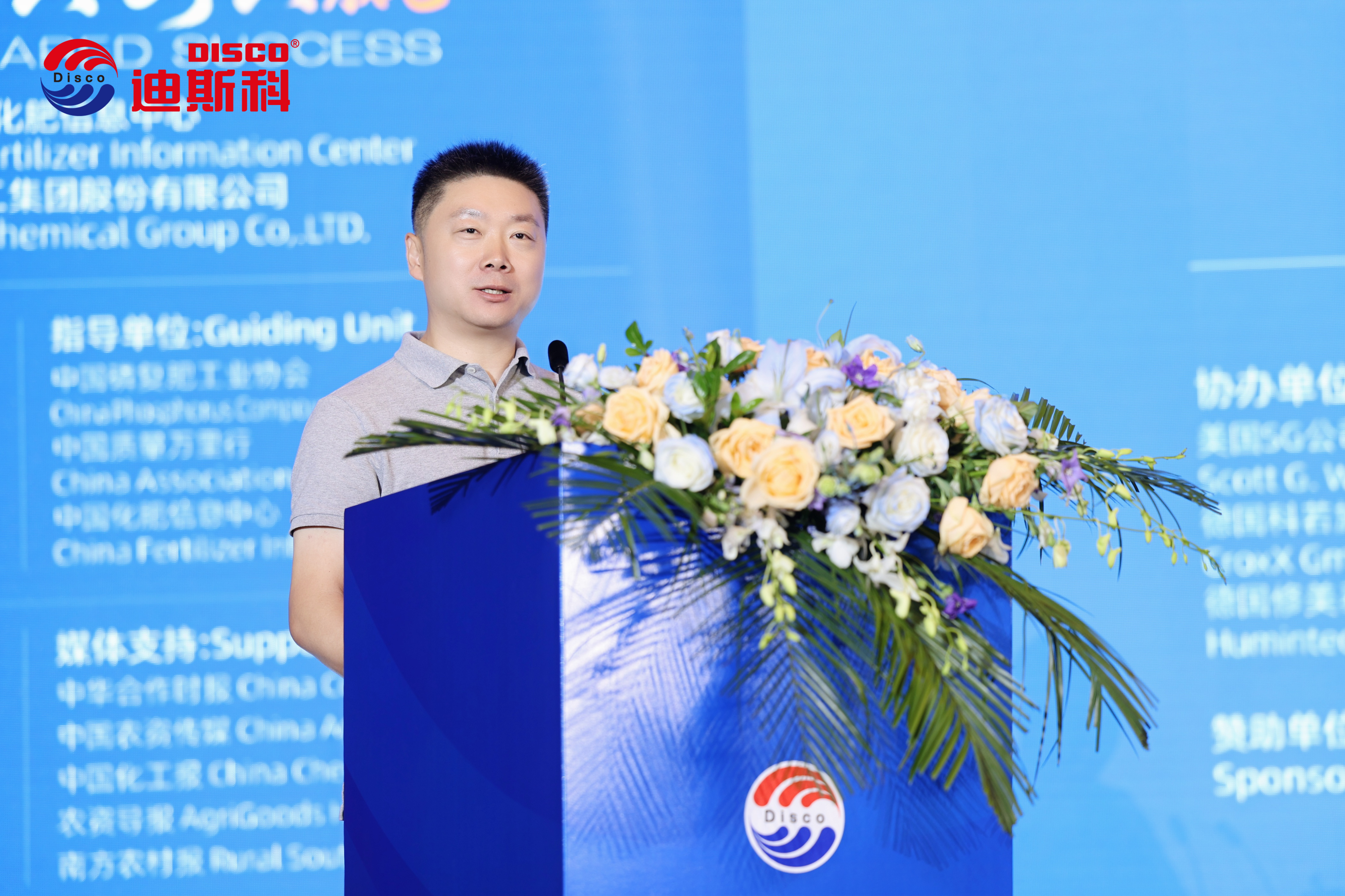 中国化肥信息中心主任李辉向参会的全体嘉宾致以最热烈的欢迎!他讲到,21年以前,迪斯科从武汉“粮仓”黄陂出发,心怀“为世界造肥料”的梦想;21年以后,迪斯科的研发中心横跨亚、美、欧,产品多达10余个品牌,只为兑现一句承诺:为全球农业可持续发展和人类健康做出积极贡献。面对耕地减少、气候突变、人口增长的考题,迪斯科的答案是把全球科技装进每一颗肥料!