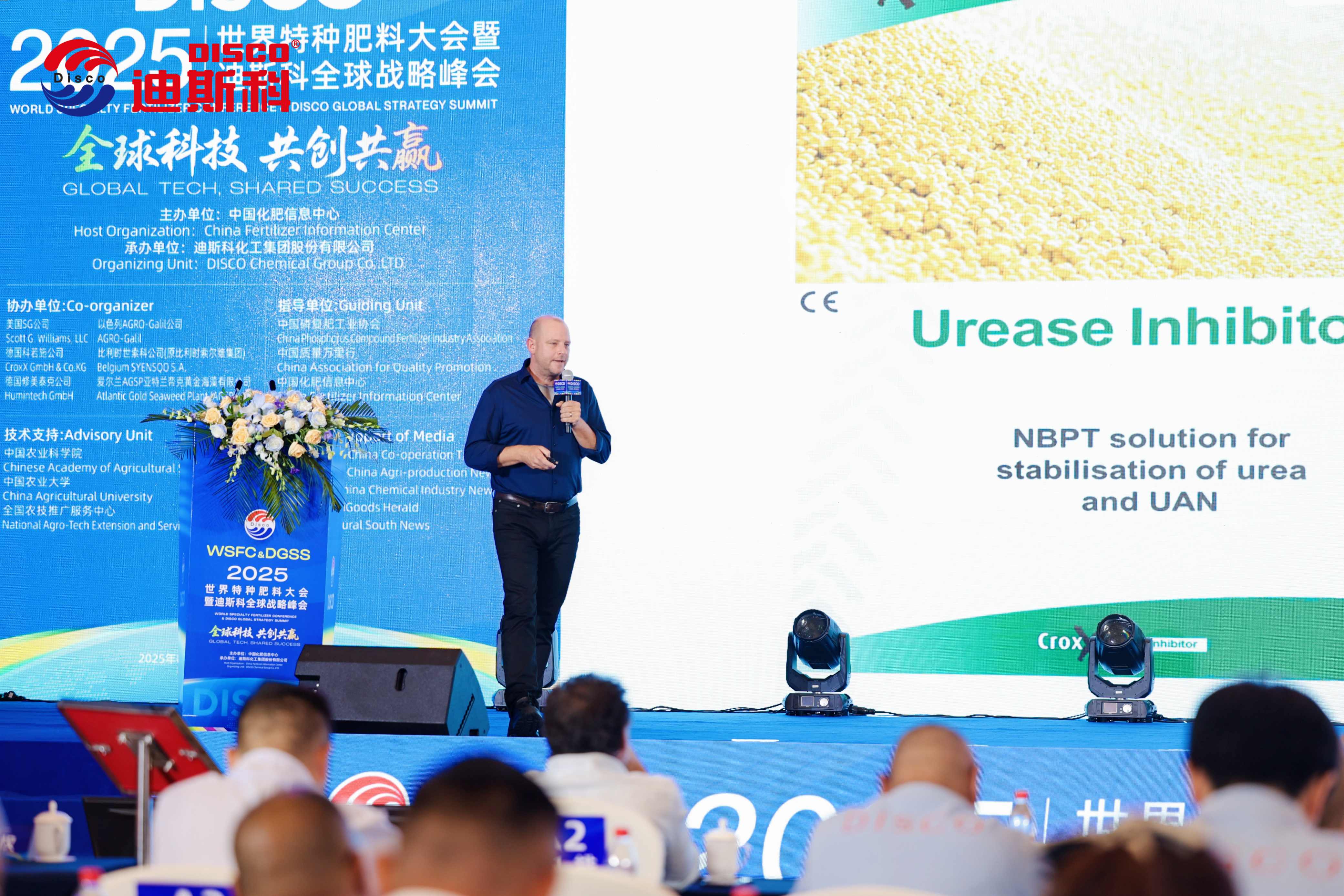 德国科若施公司联合创始人、董事总经理伯特・耶格博士作《德国CroxX增效抑制技术的创新与全球应用展望》主题报告,为嘉宾带来前沿科技分享:通过各类严格的检测标准证明,CroxX增效技术在促进磷的活化吸收、提高养分吸收利用率、保护生态环境等方面具有卓越优势。