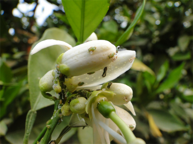 柑橘木虱,属同翅目,木虱科,以寄主植物韧皮部汁液为食的害虫。柑橘木虱成虫体长约为3-4mm,其停留或取食时与停息面成45°,柑橘木虱寿命较长,冬季柑橘木虱寿命可达到 260天,夏秋季最长也可活120天,16℃和41℃均可产卵,且只在寄主植物嫩梢产卵,一年内田间可发生5代以上。